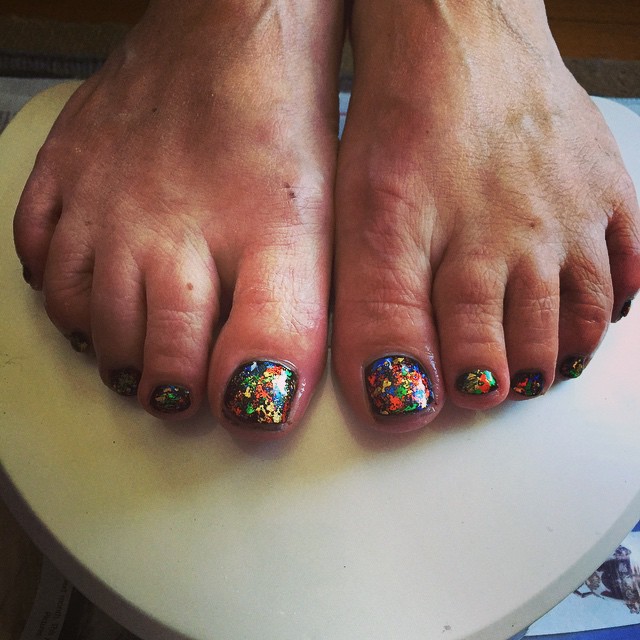 'Black Opal' toes I did on my mother - using Black Tarmac with blue, green, gold and bronze foils.