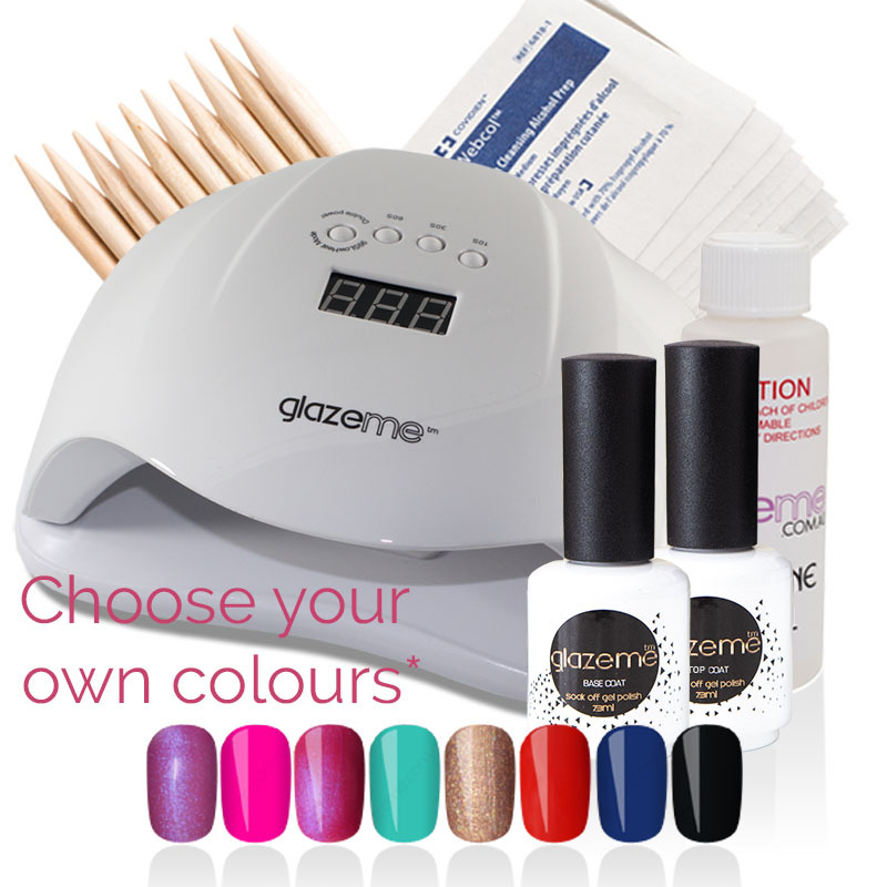 The GlazeMe Premium Starter Kit is the optimal option for those wanting to customise their colour selection along with the essentials to undertake the gel nail polish process.