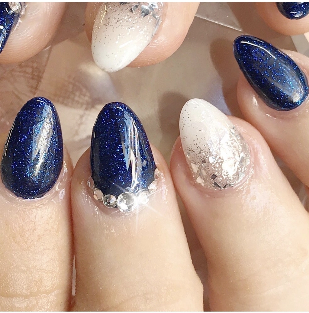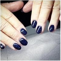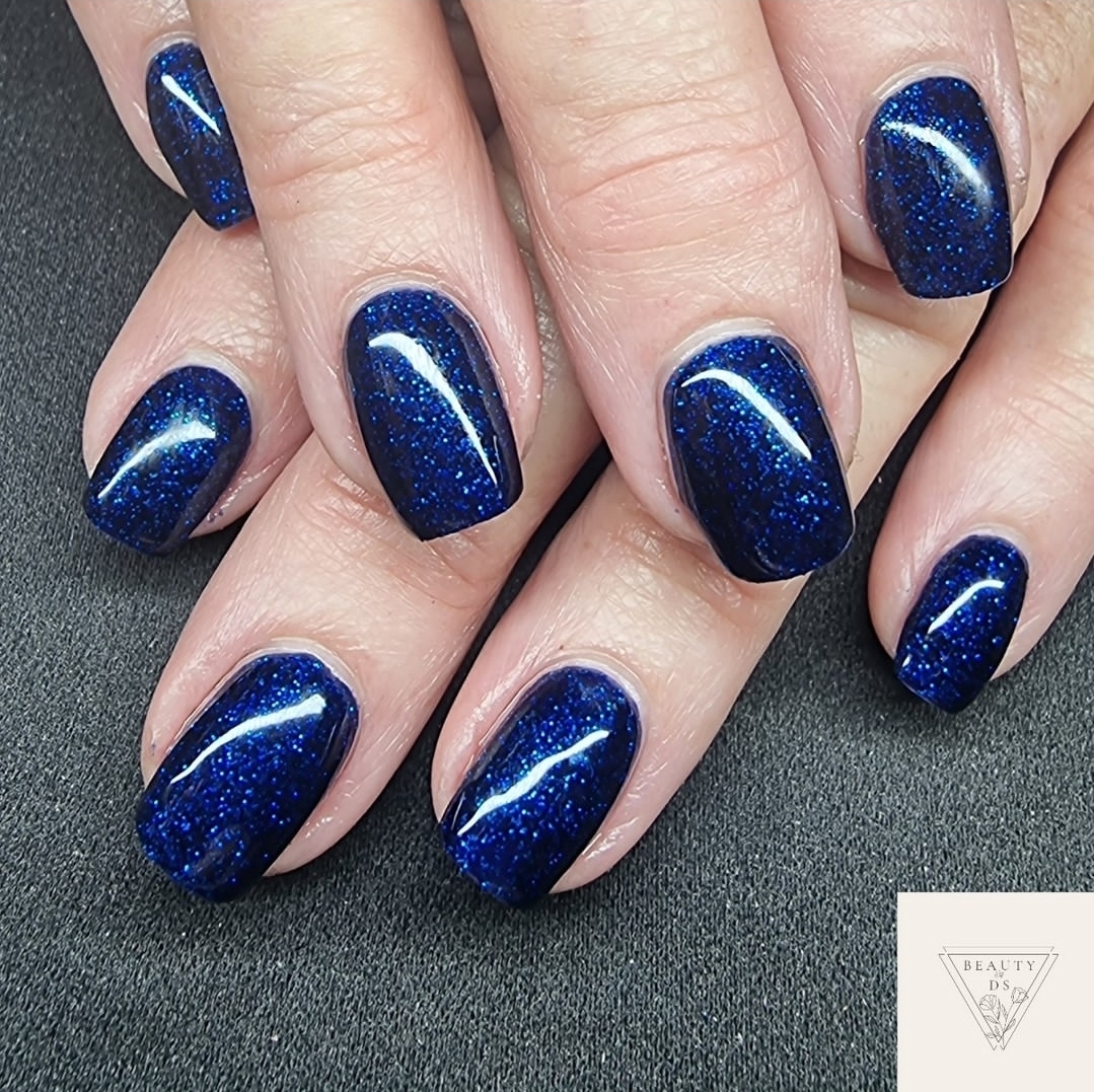 A deep, dark and glorious blue glitter polish exuding elegance with a side of sass.