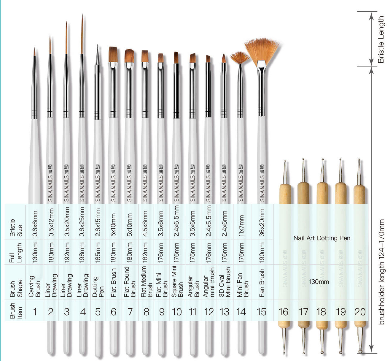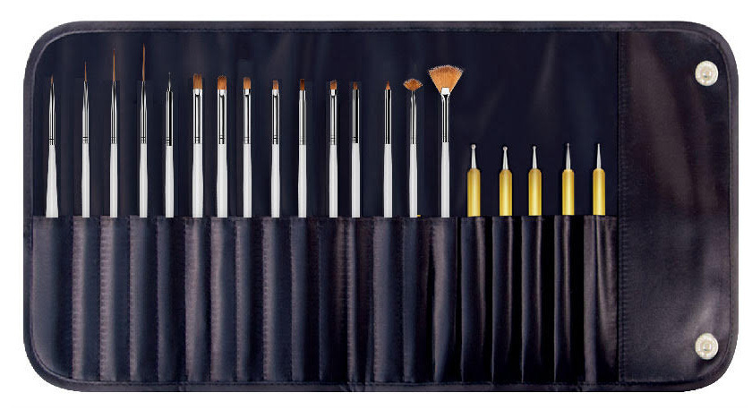 20x High quality nail art brushes - Comes with portable folding pouch.