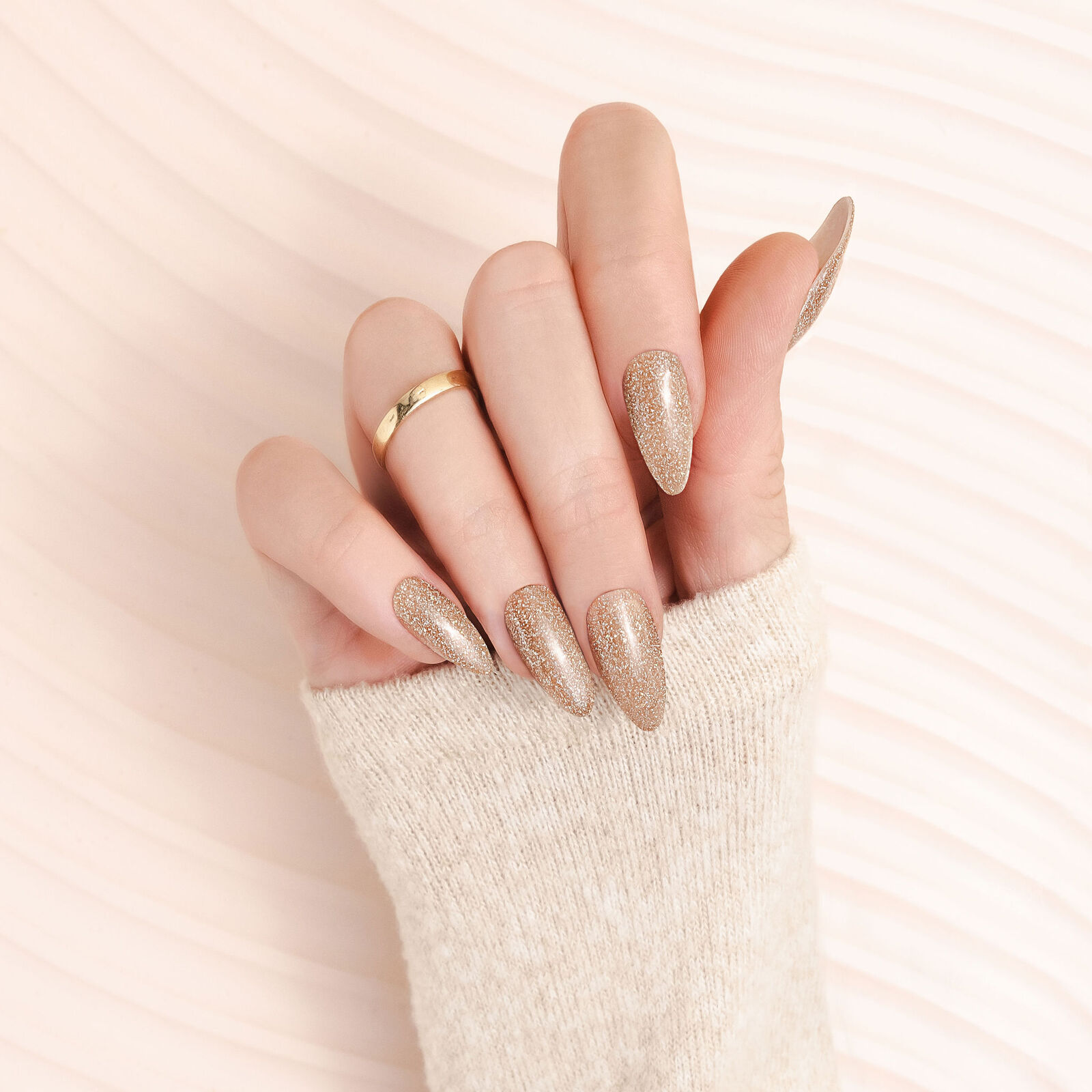 This polish twinkles like no other! The reflective disco glitter puts on a show when the lights shine upon her. A nude beige suspension lets the glitter do all of the dancing while giving off a gold-like glow.